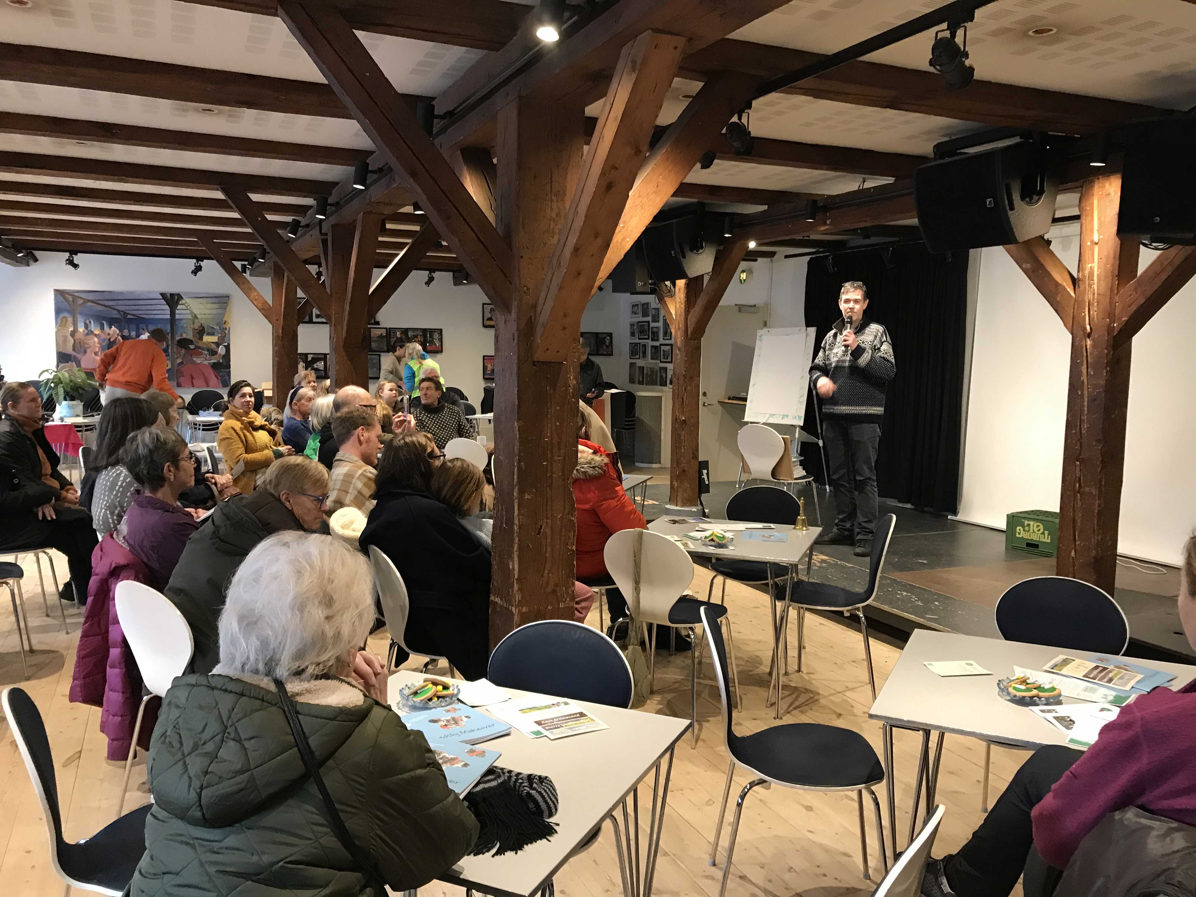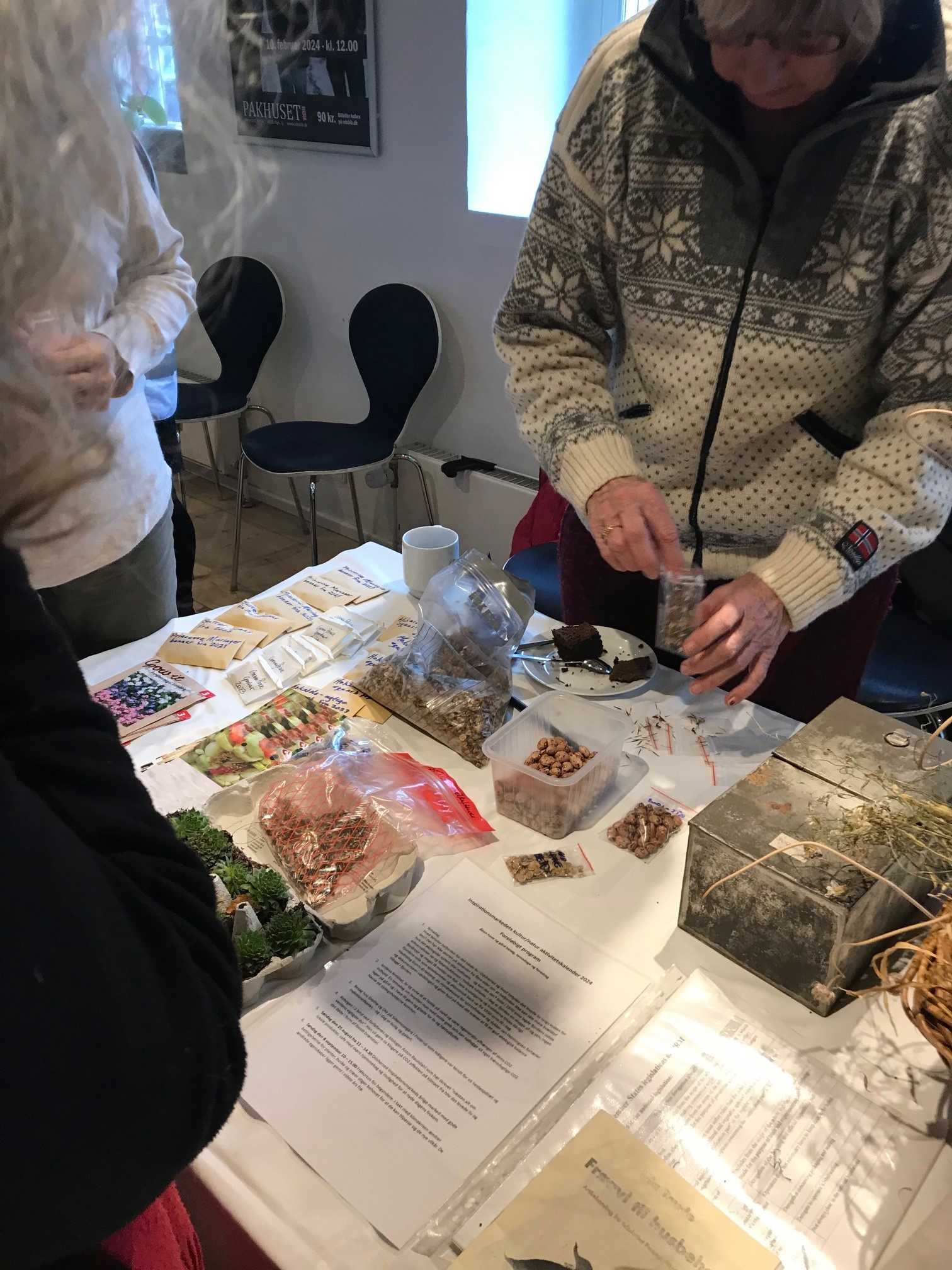 I slutningen af januar 2024 inviterede kommunens klimateam i samarbejde med BOK og LOF til Klimabazar i Pakhuset i Nykøbing. En inspirerende dag med lokale ildsjæle, tøjbytte, repaircafé, frøbytte, oplæg og meget mere .